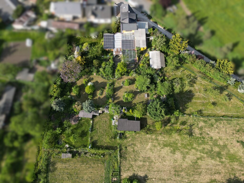 Zum Objekt gehören außerdem ca. 75 m² Wintergärten, mehrere Vogelvolieren, eine überdachte Terrasse, Garagen, ein Carport sowie Stallgebäude. Die Kombination aus Wohn-, Garten- und landwirtschaftlicher Fläche macht das Grundstück besonders attraktiv für alle, die naturnah leben und arbeiten möchten.